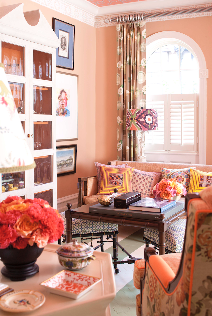 Гостиная в коралловых тонах