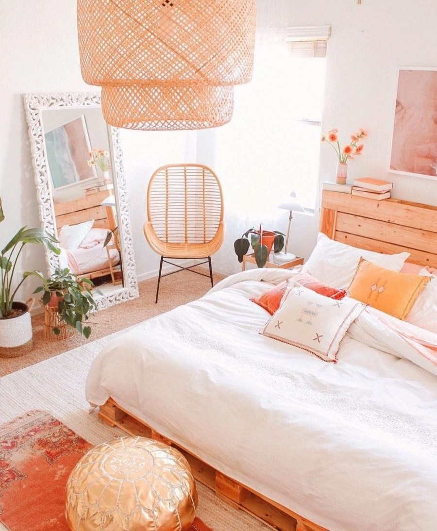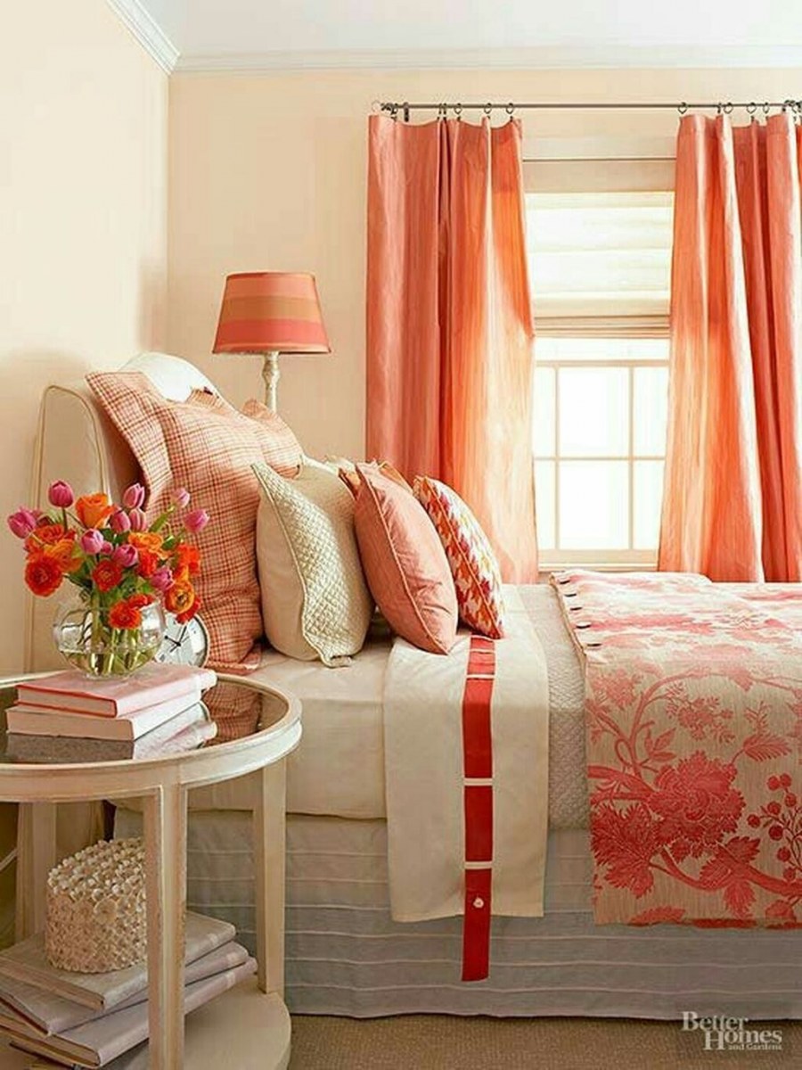 Персиковый цвет в интерьере спальни