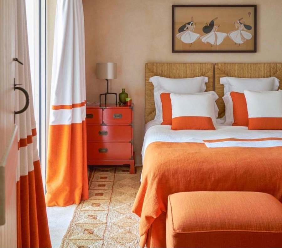 Оранжевый в интерьере спальни