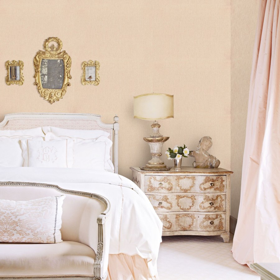 Персиковые стены в спальне