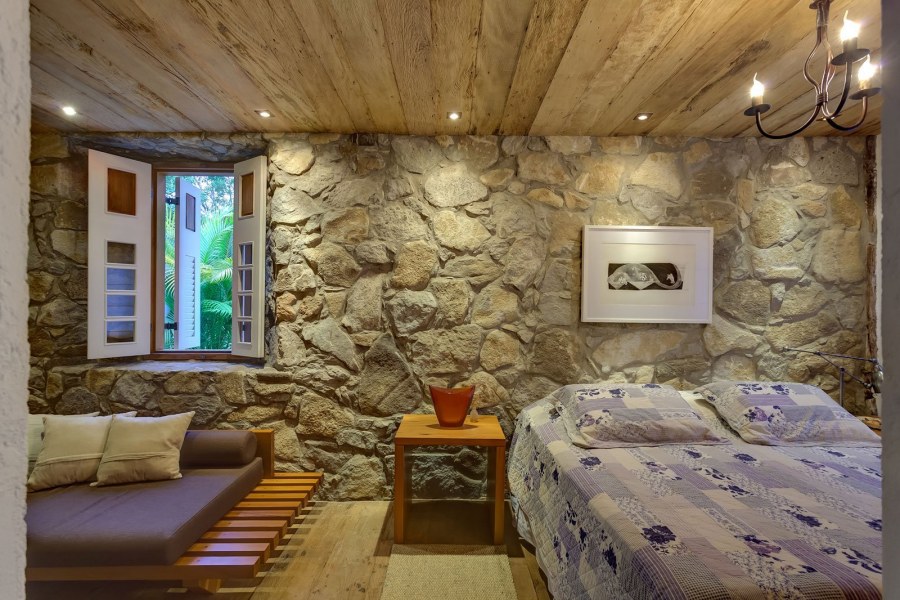 Каменная стена в спальне