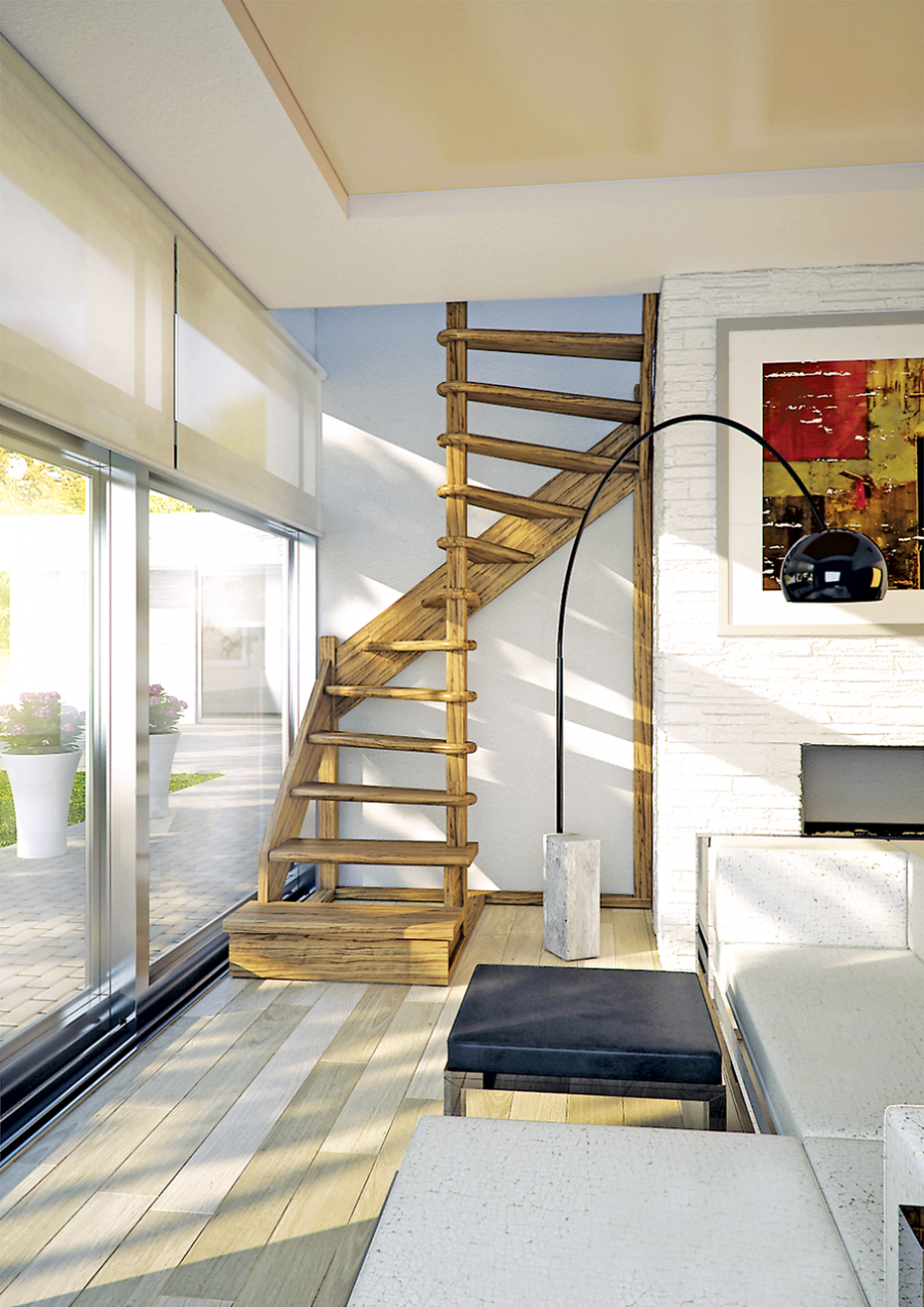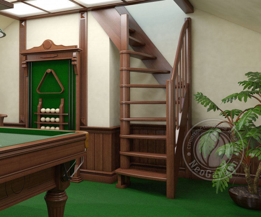 Поворотная деревянная лестница «Фаворит ЛМП-12» правозаходная