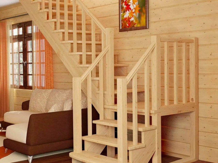 Лестница к-004м 1 п с подступенками сосна 7 уп