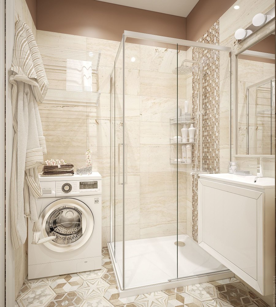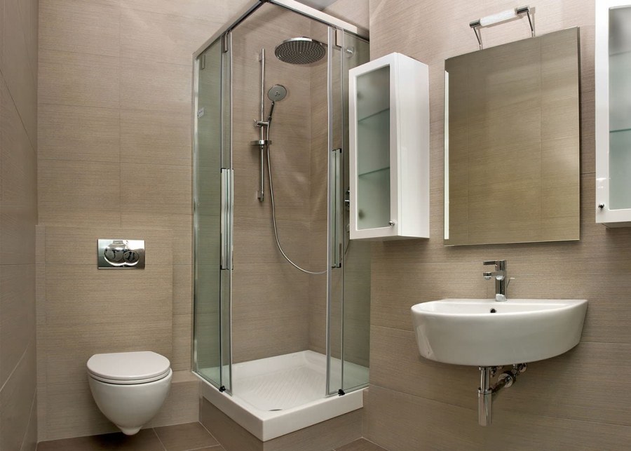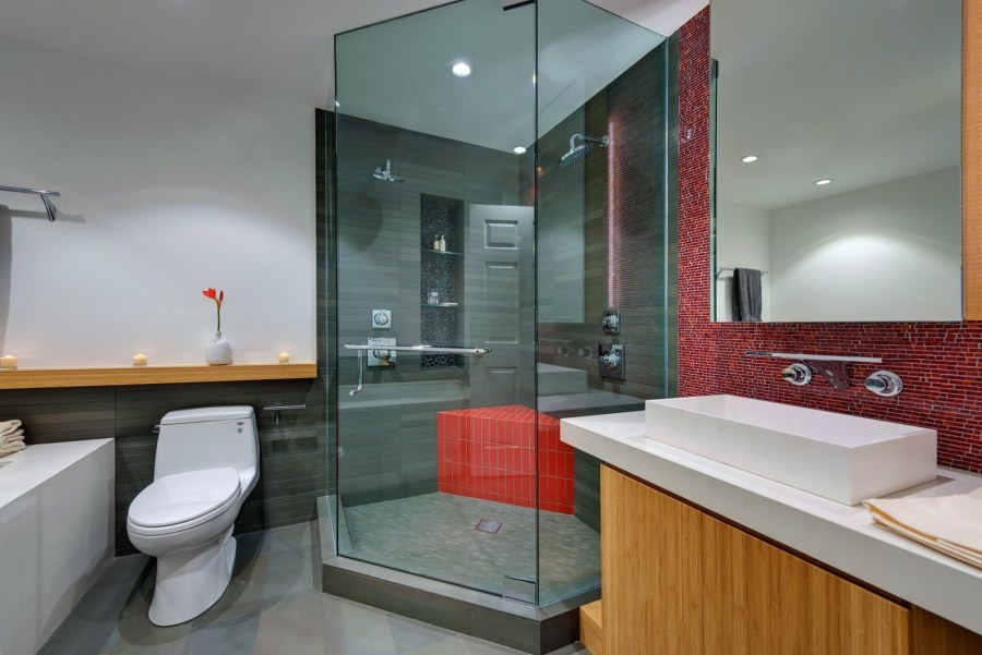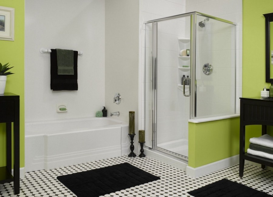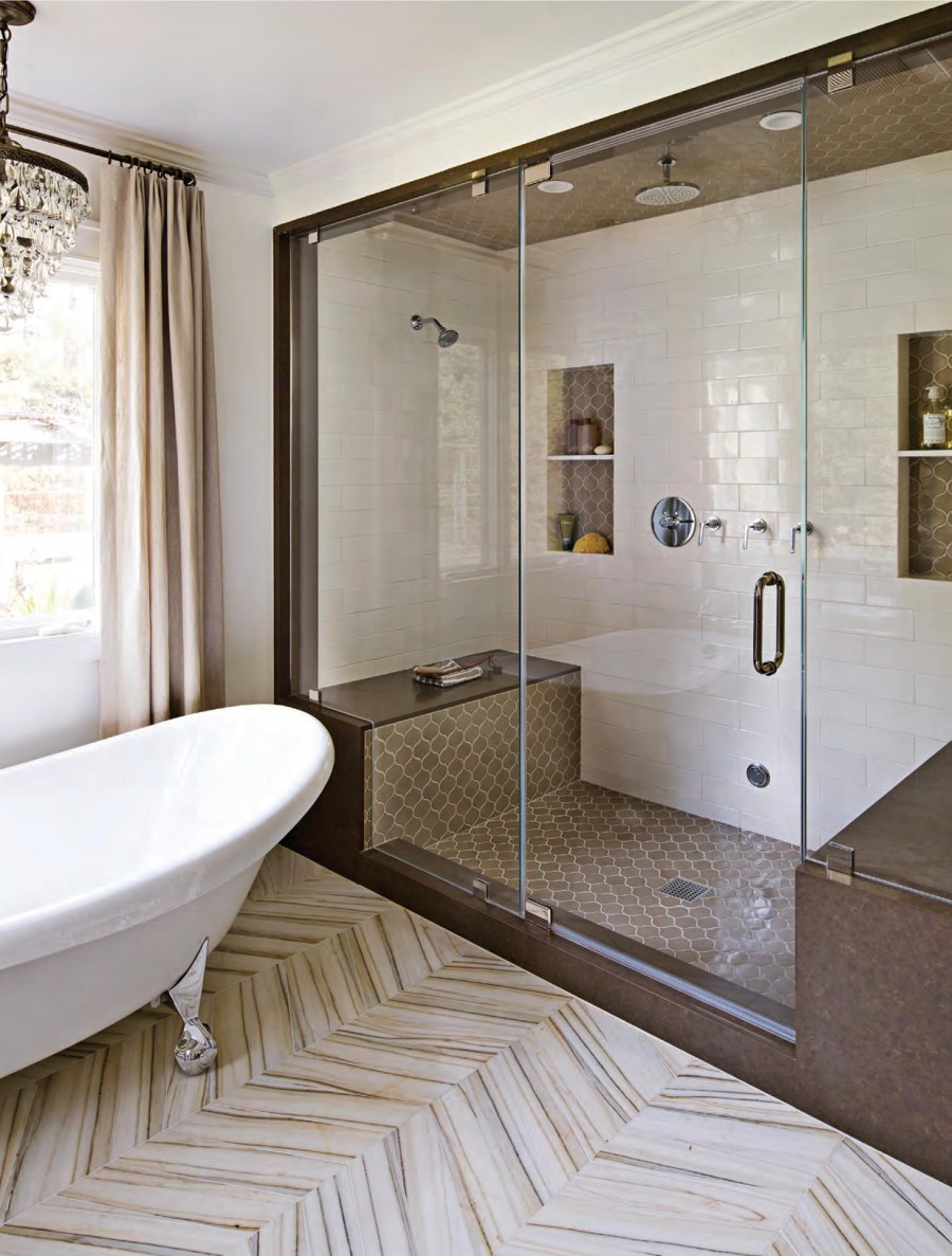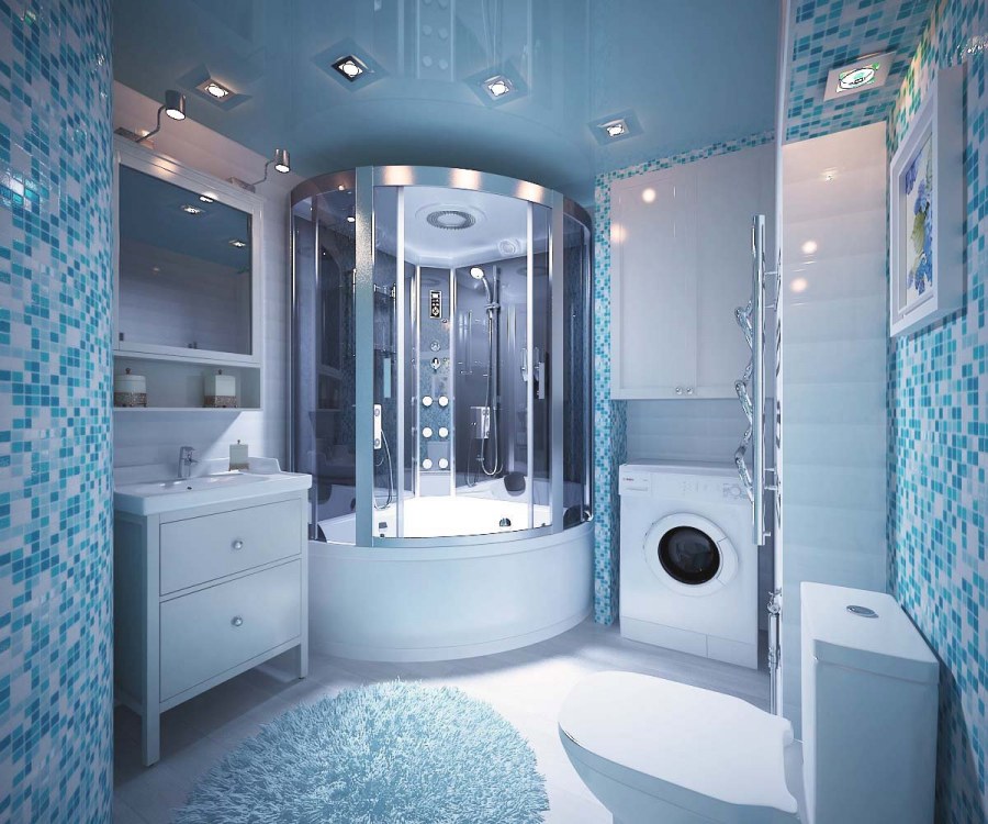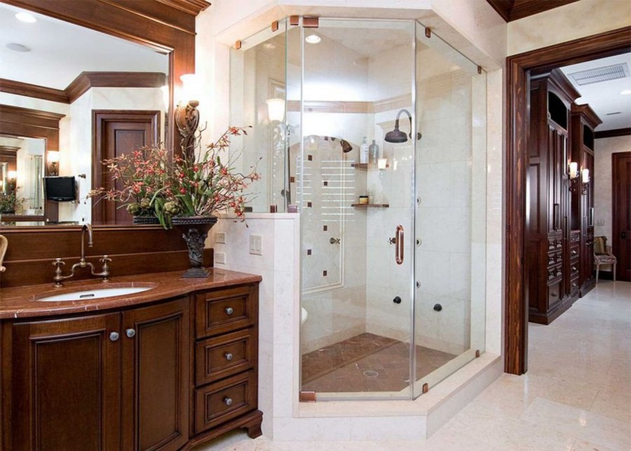 Интерьер ванной комнаты с душевой кабиной и ванной