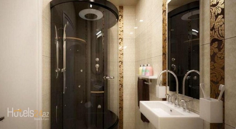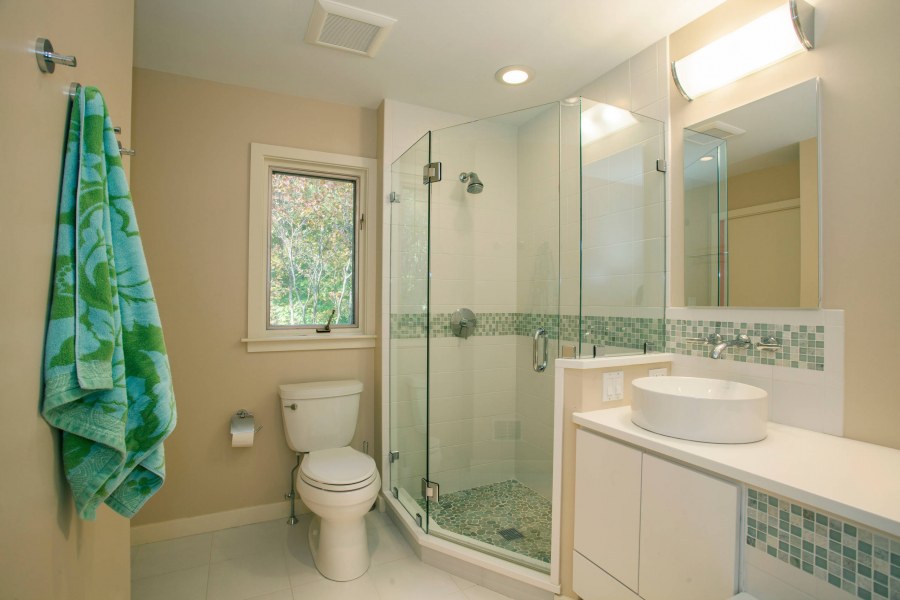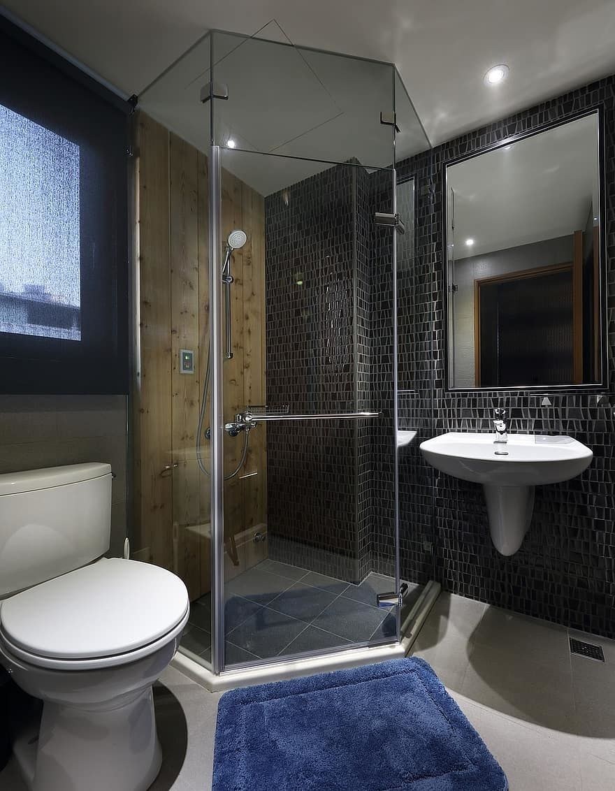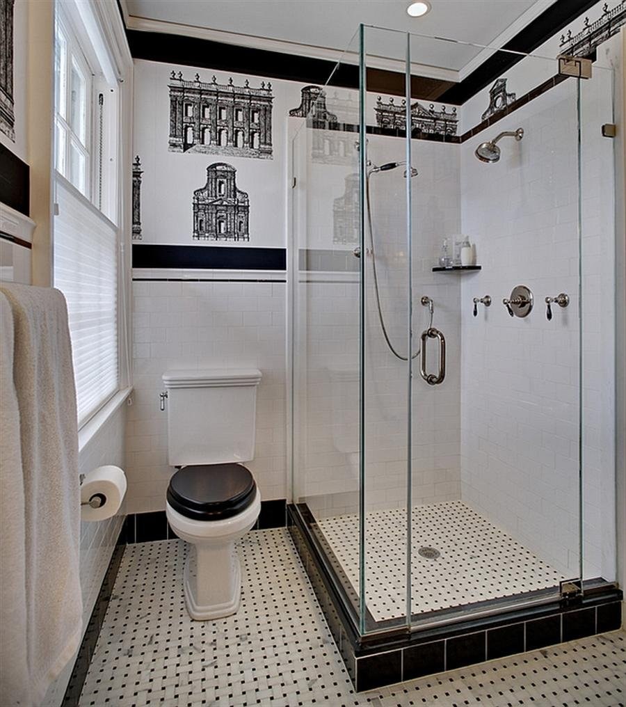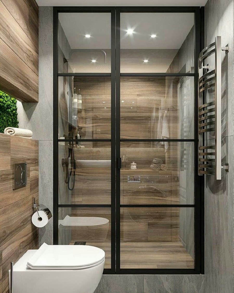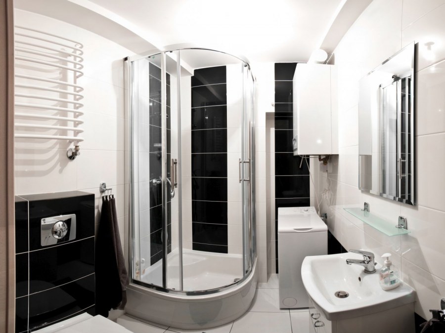 Интерьер ванной комнаты с душевой кабиной и ванной