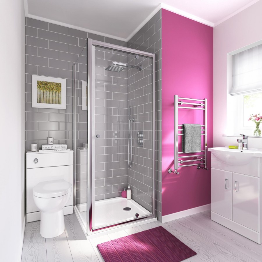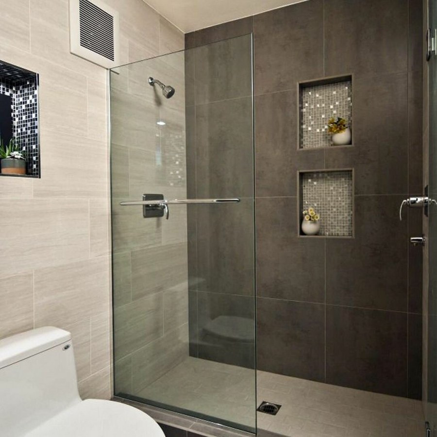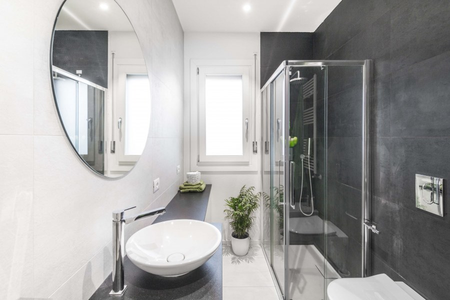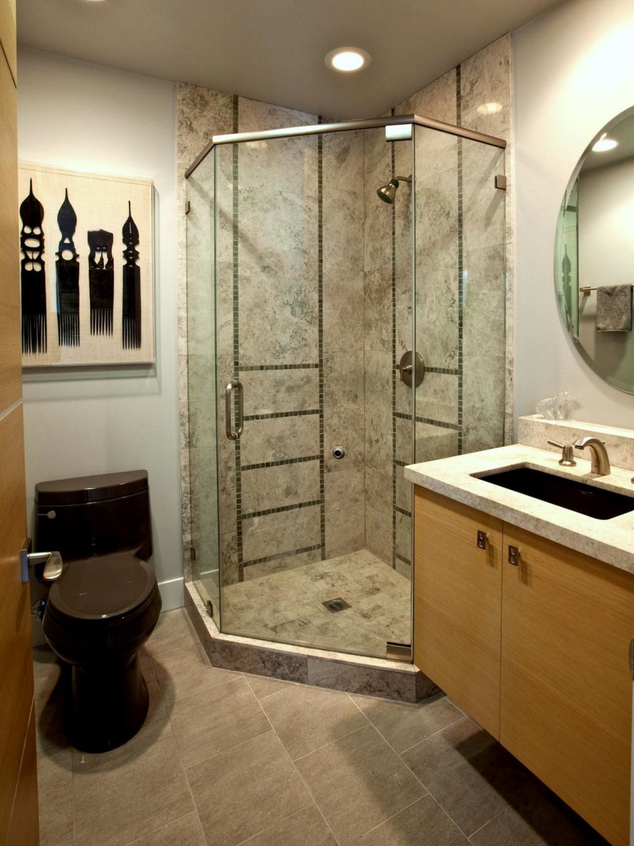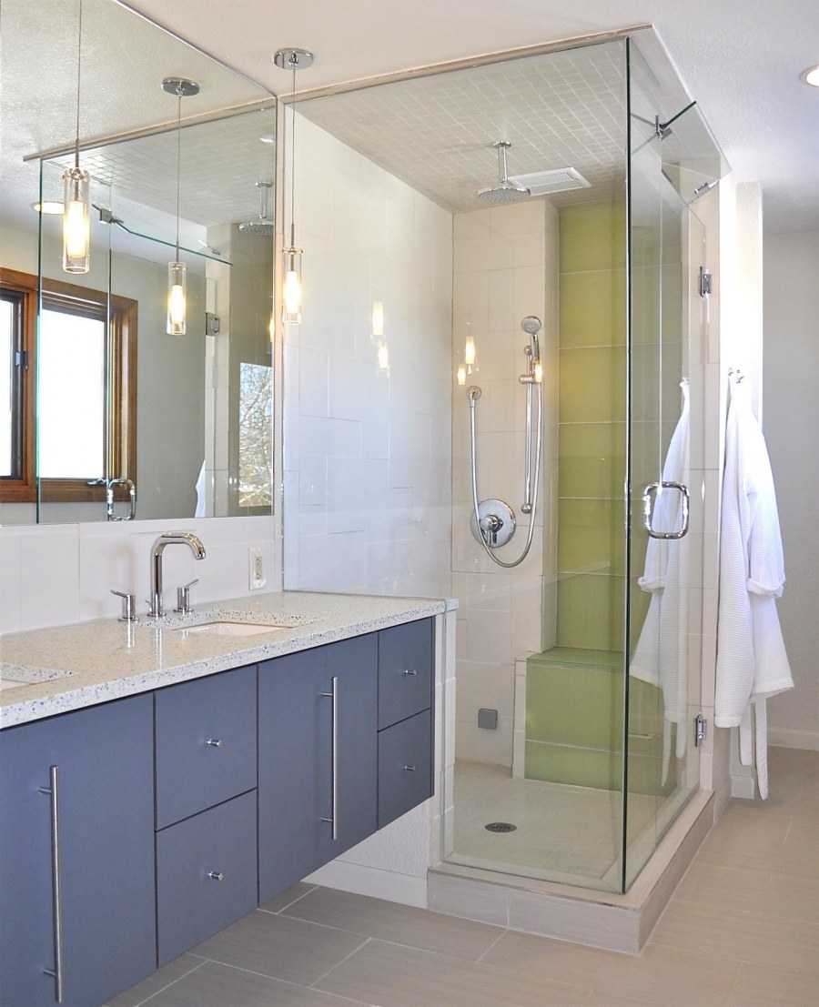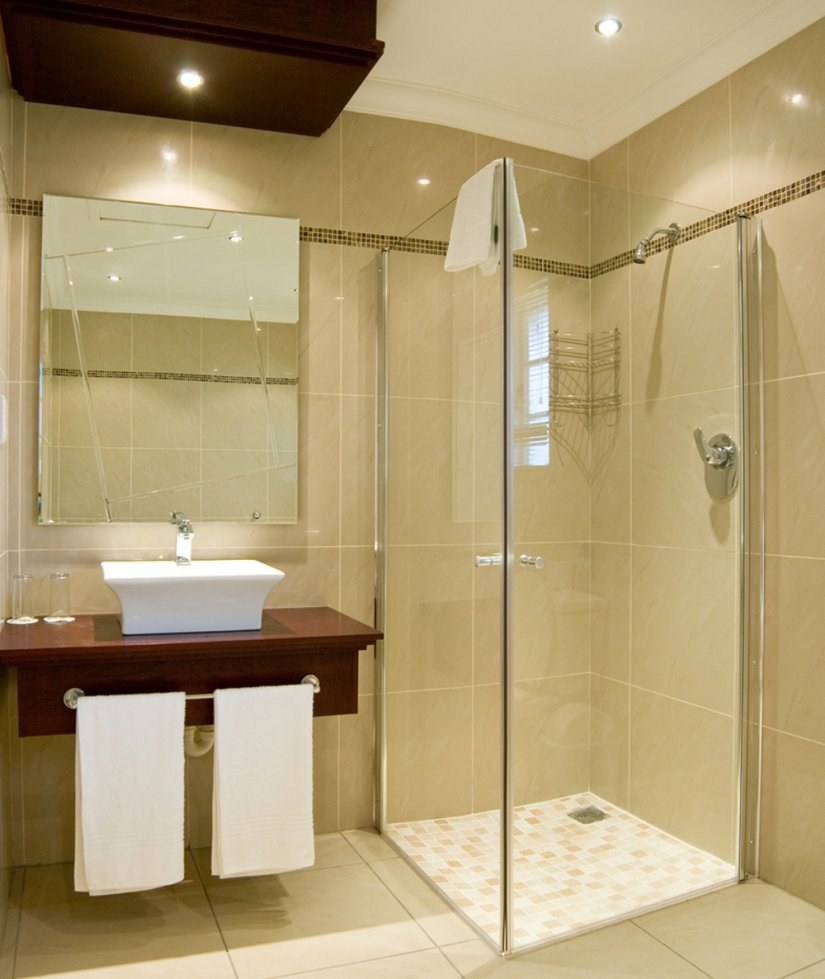 Интерьер ванной комнаты с душевой кабиной и ванной
