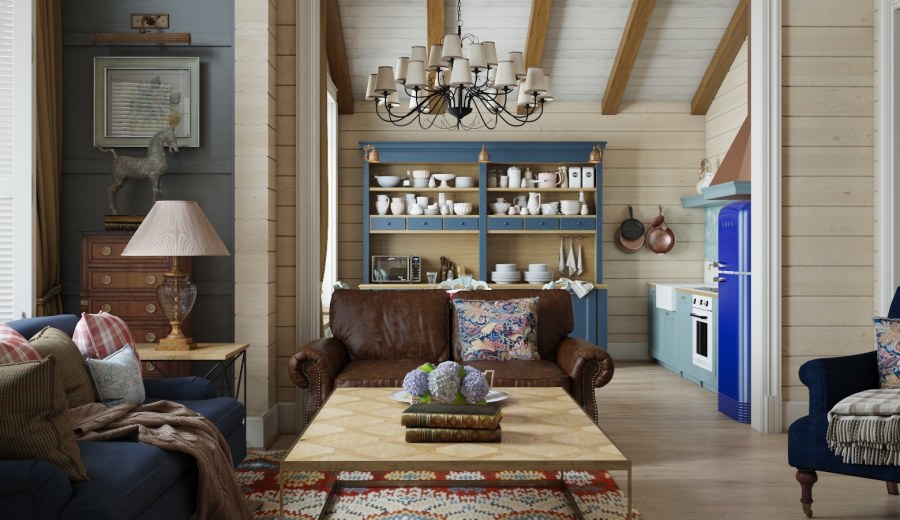 Интерьер загородного дома из бруса в стиле Кантри