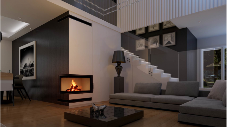 Камин Zeus, со стеклом, черный, h=2.4 (Traforart
