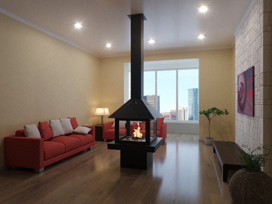 Камин Diamante, Центральный, без стекла, черный (Traforart)