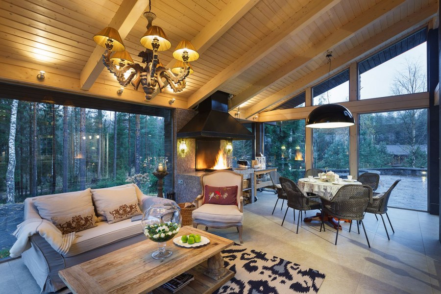Интерьер веранды в загородном доме
