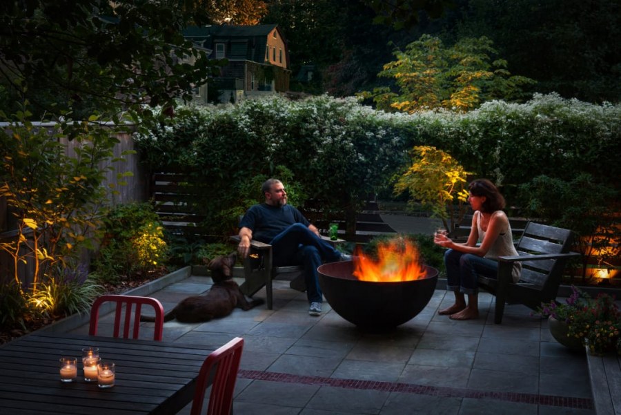 Уличная патио зона с костром