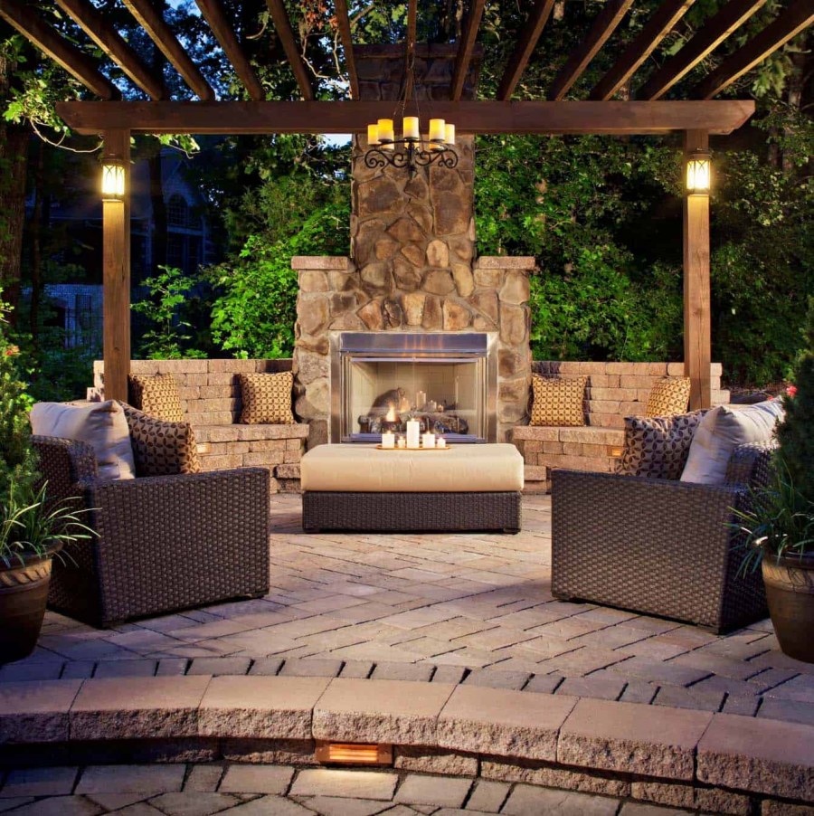 Очаг на улице в интерьере (68 фото)