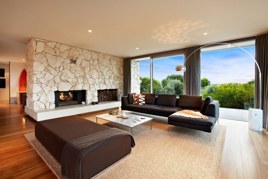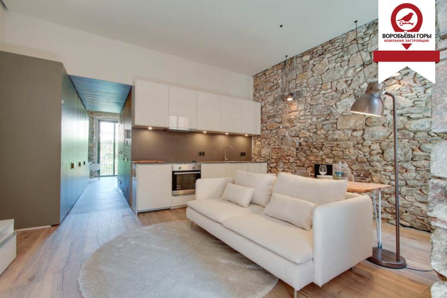 Гостиная с декоративным камнем