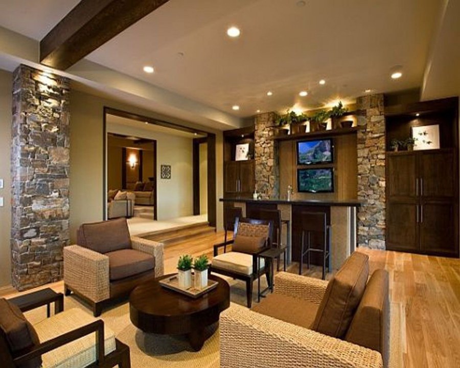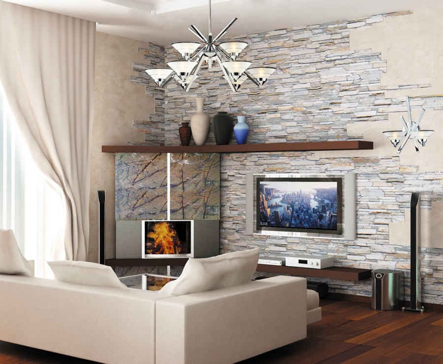 Отделка гостиной декоративным камнем