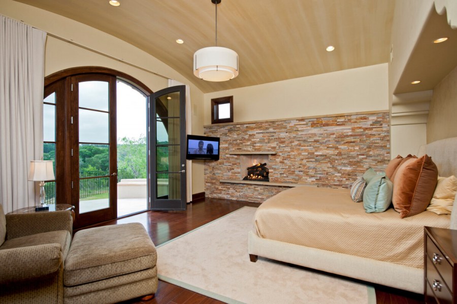 Отделка спальни декоративным камнем