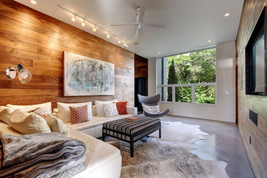 Деревянные панели в гостиной