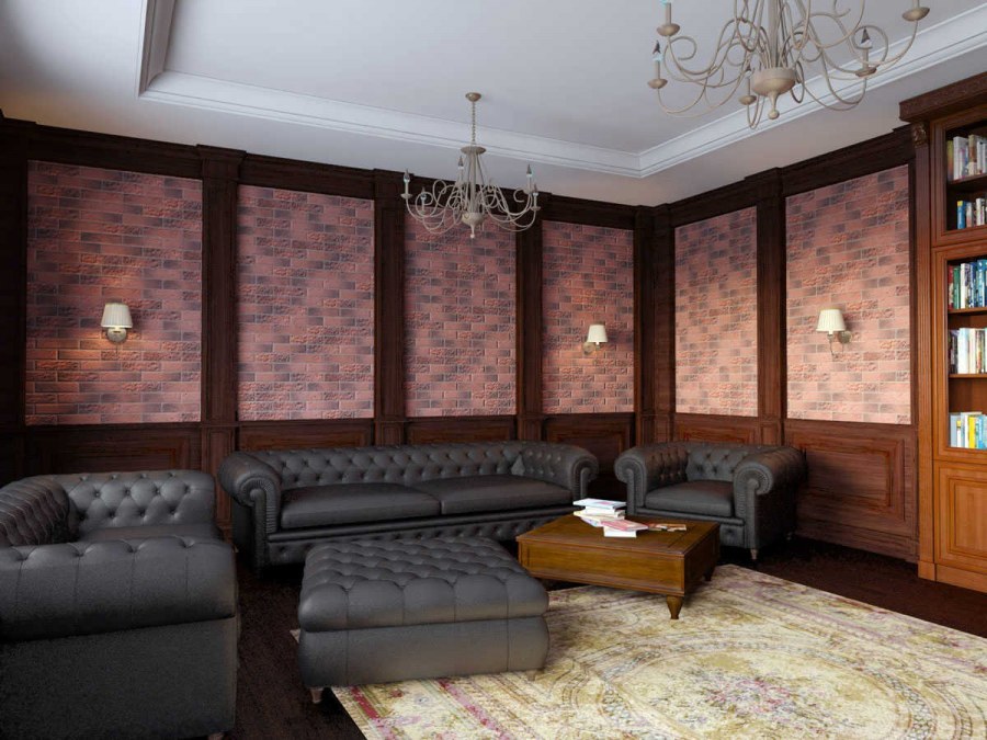 Отделка кирпичом в интерьере гостиной