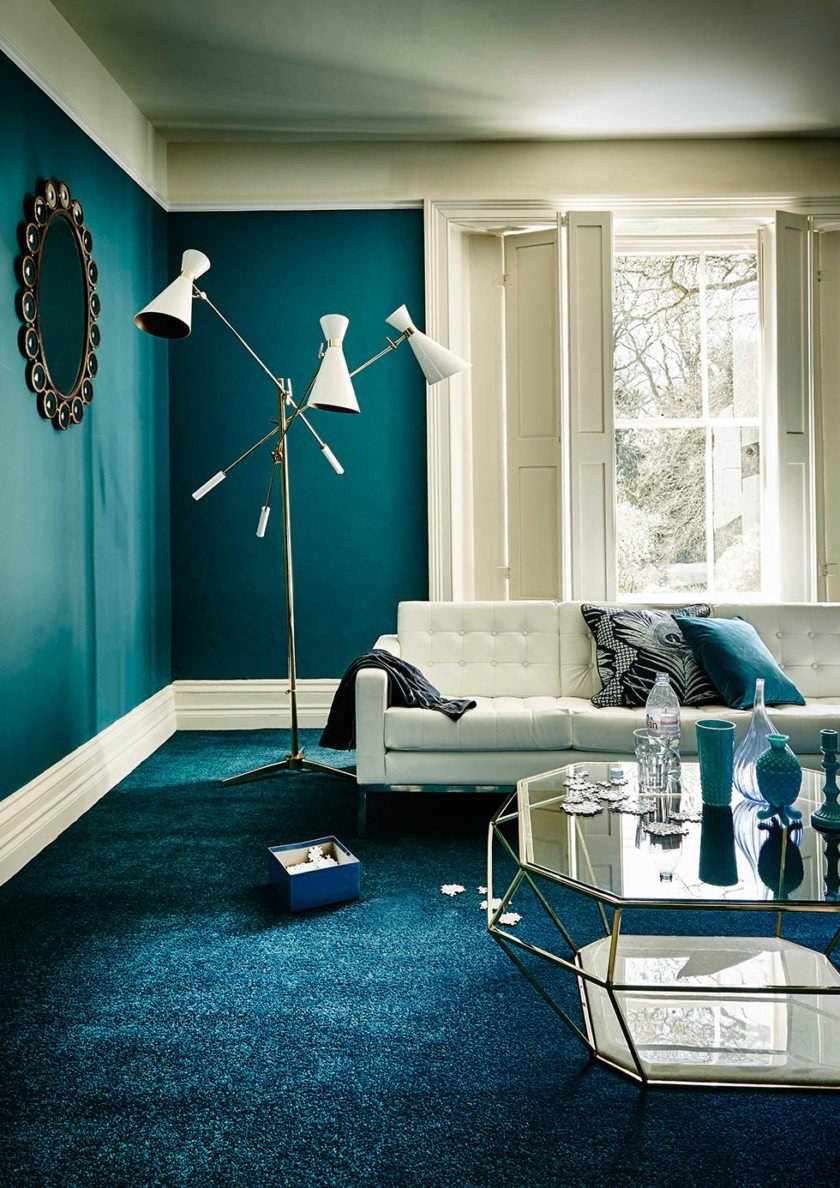 Бирюзовые стены в гостиной