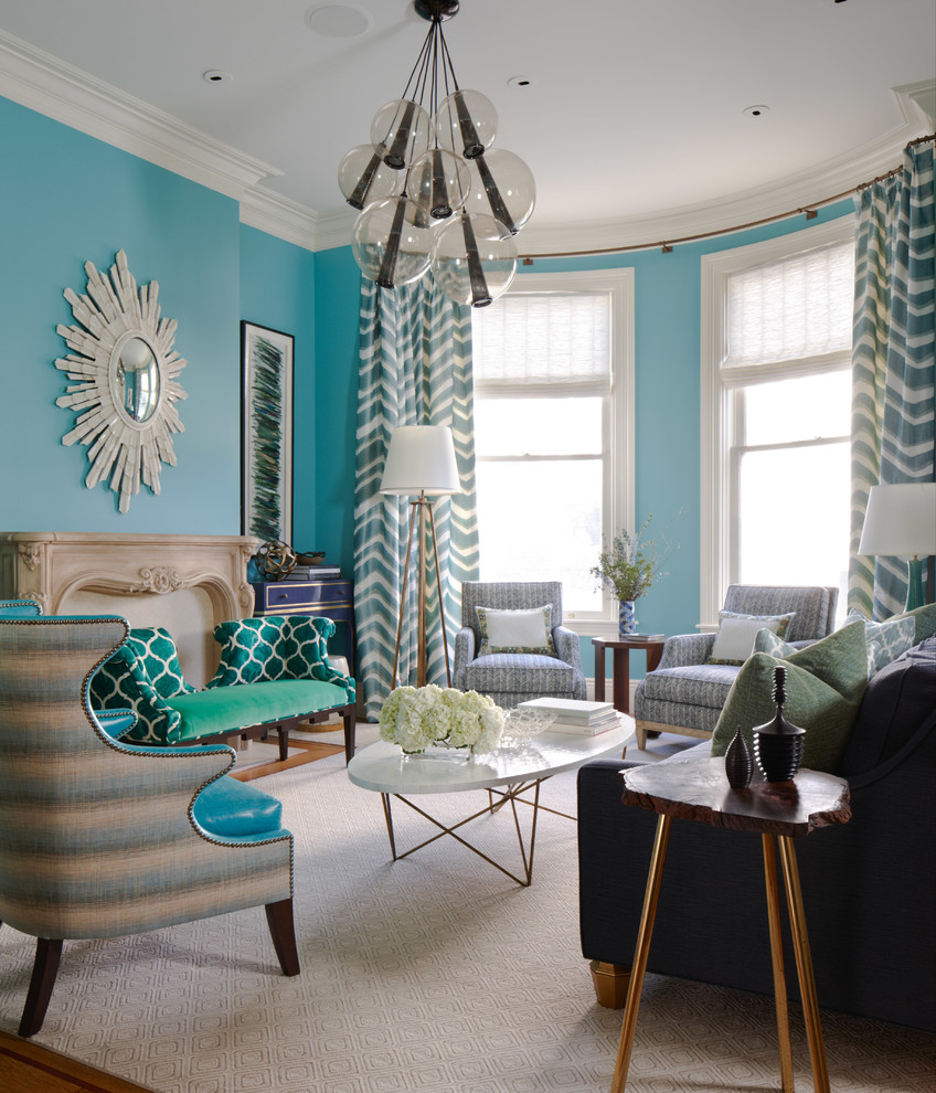 Бирюзовая гостиная с камином