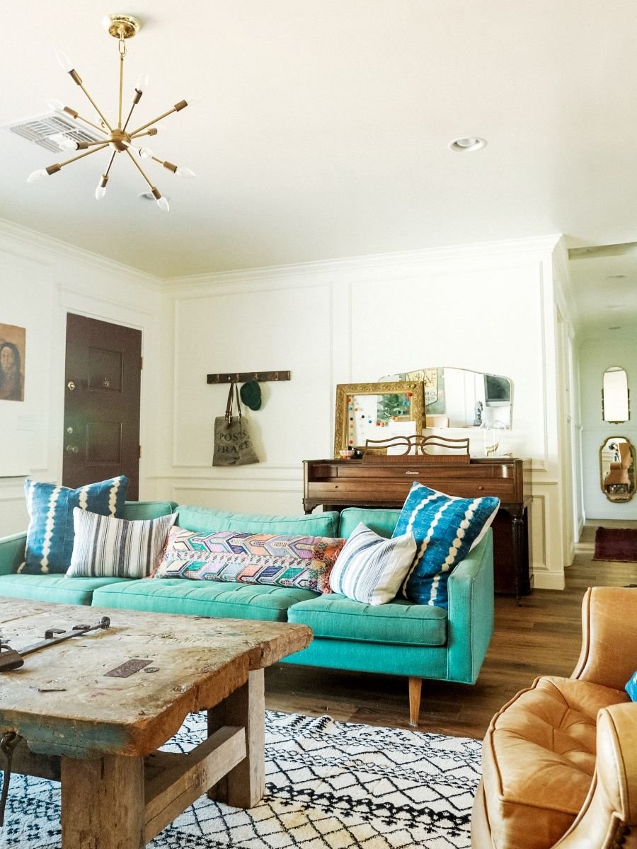 Гостиная с бирюзовым диваном
