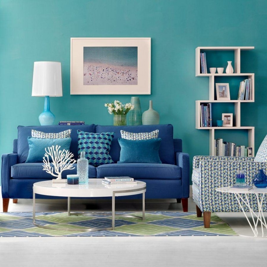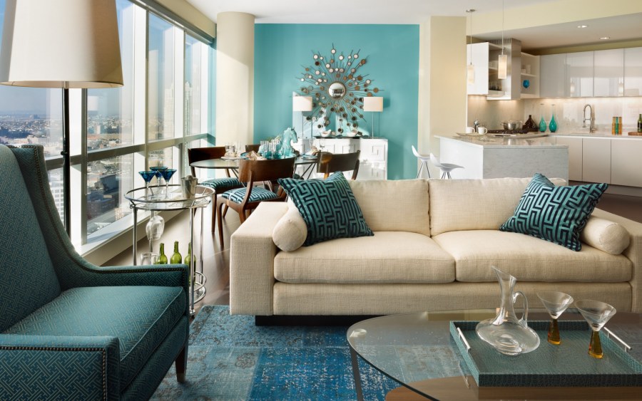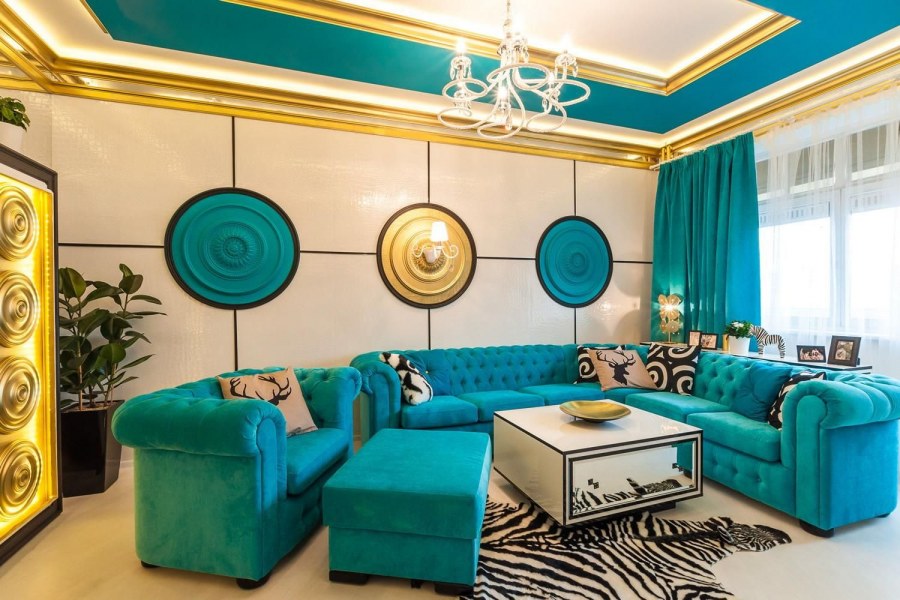 Бирюза в интерьере гостиной