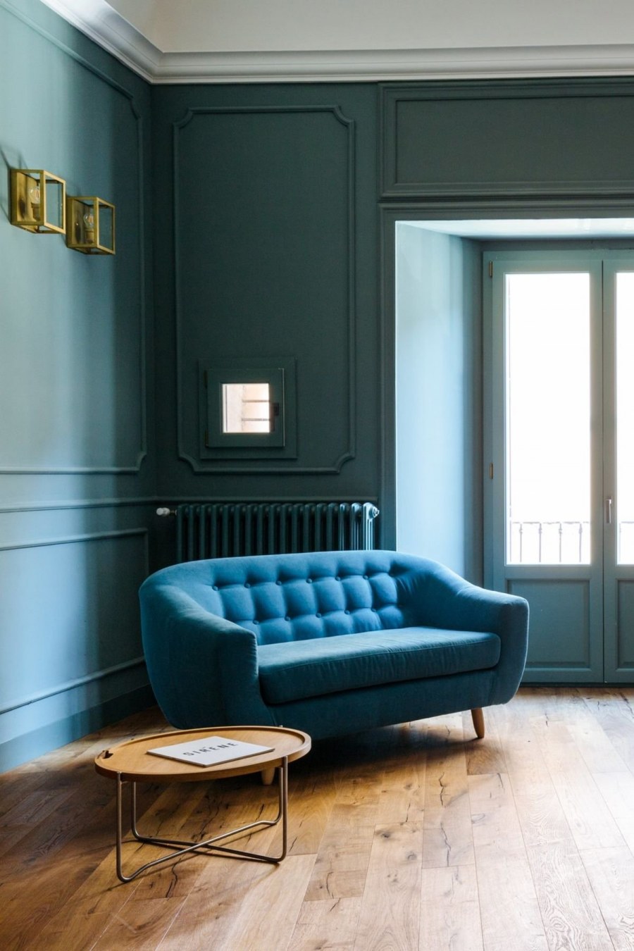Гостиная с диваном цвета морской волны
