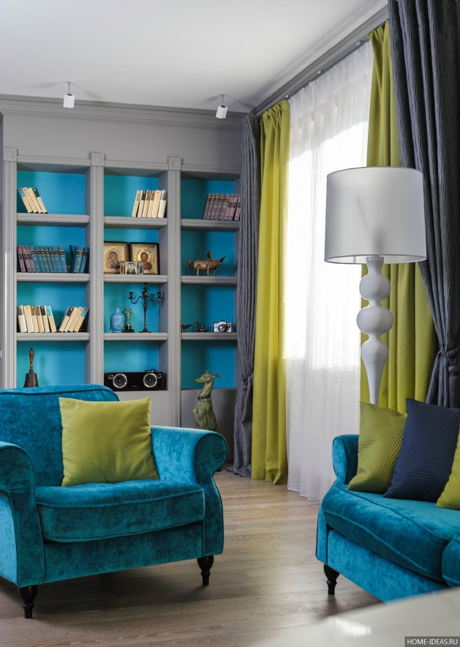 Гостиная в бирюзовых тонах