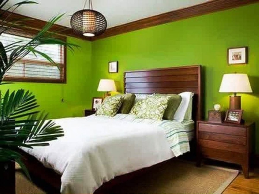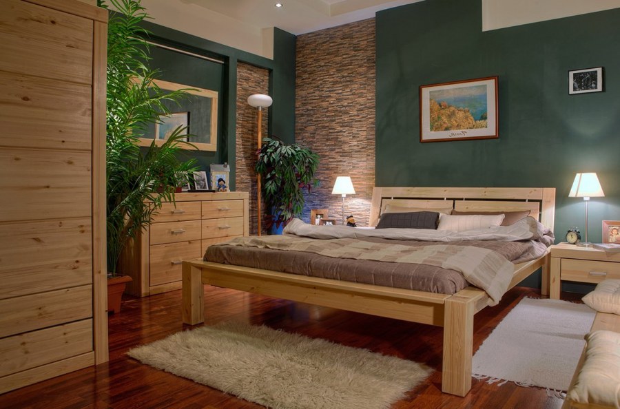 Спальня зеленая с деревом
