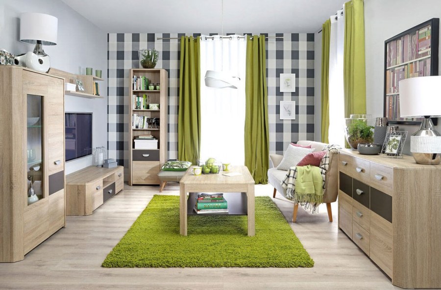 Сочетание зеленого и дерева в интерьере
