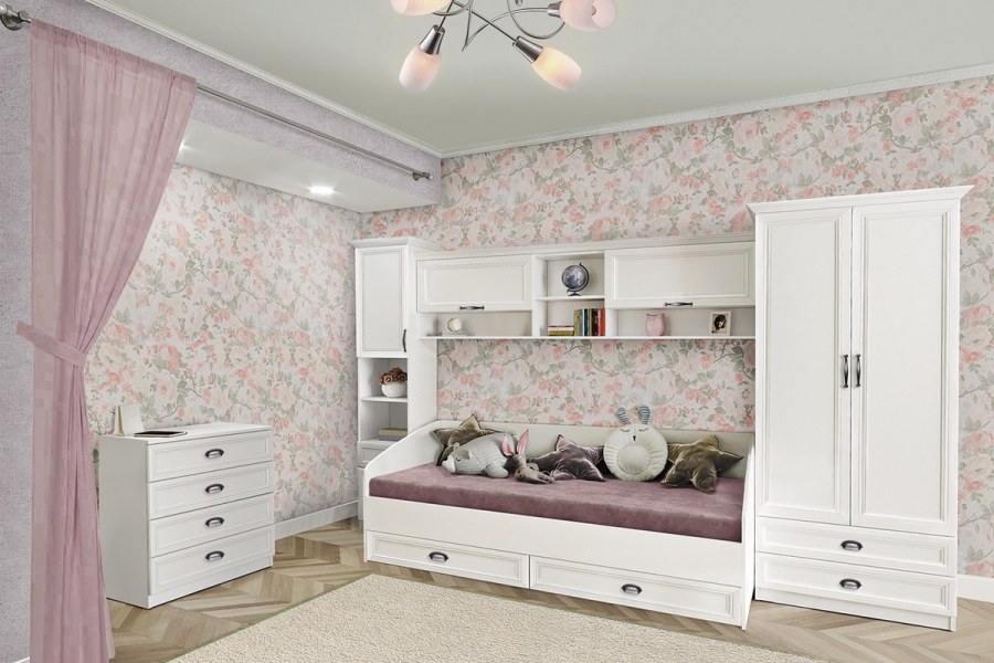 Спальня piccola MK-4619-Pi кровать тумбочка шкаф розовый/белый