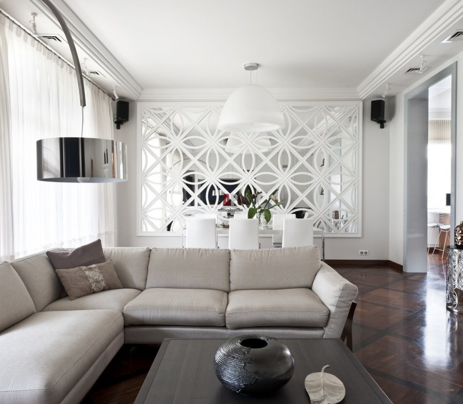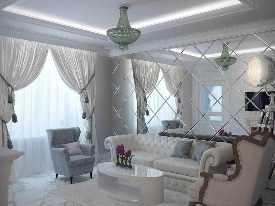 Гостиная с зеркальными панно