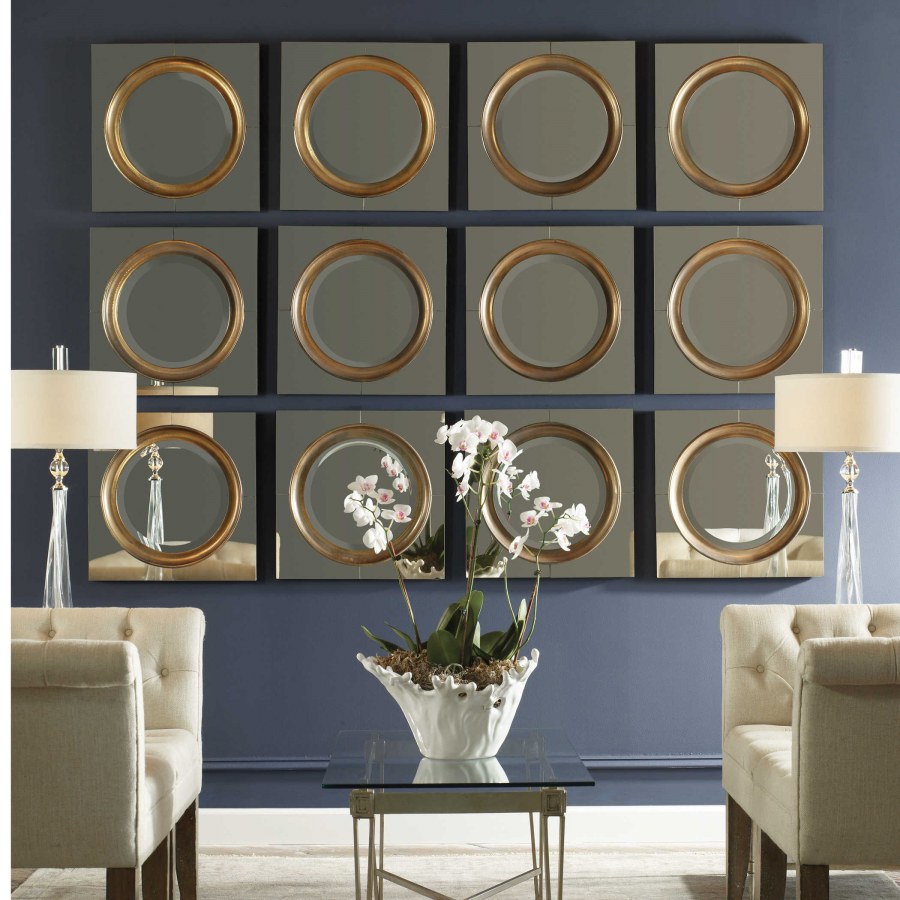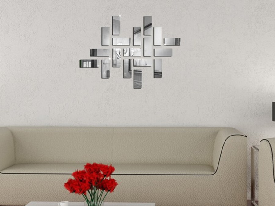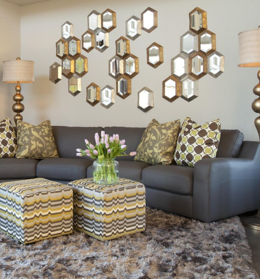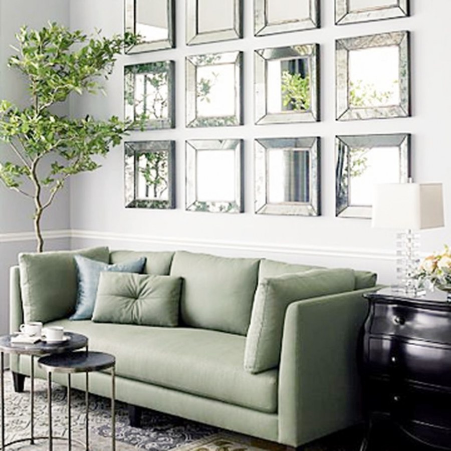 Декоративные зеркала над диваном