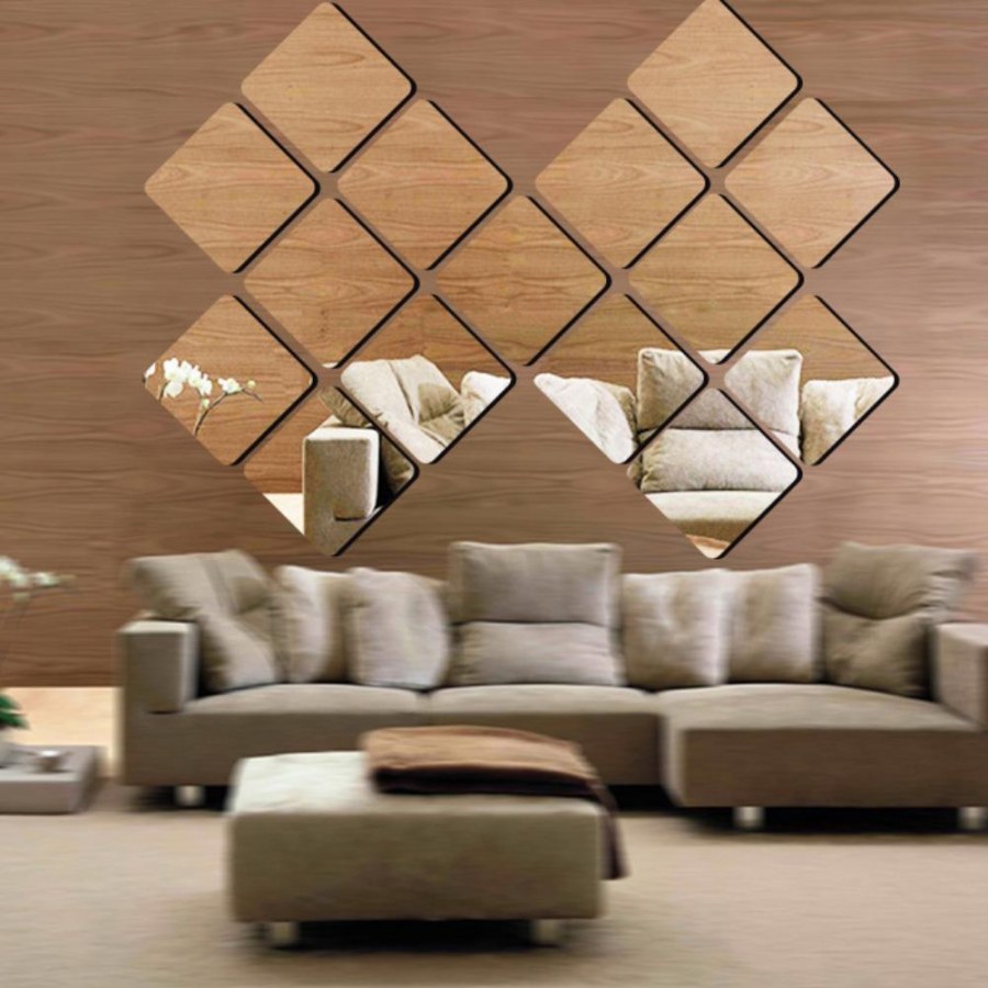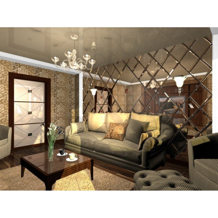 Зеркальная плитка в гостиной
