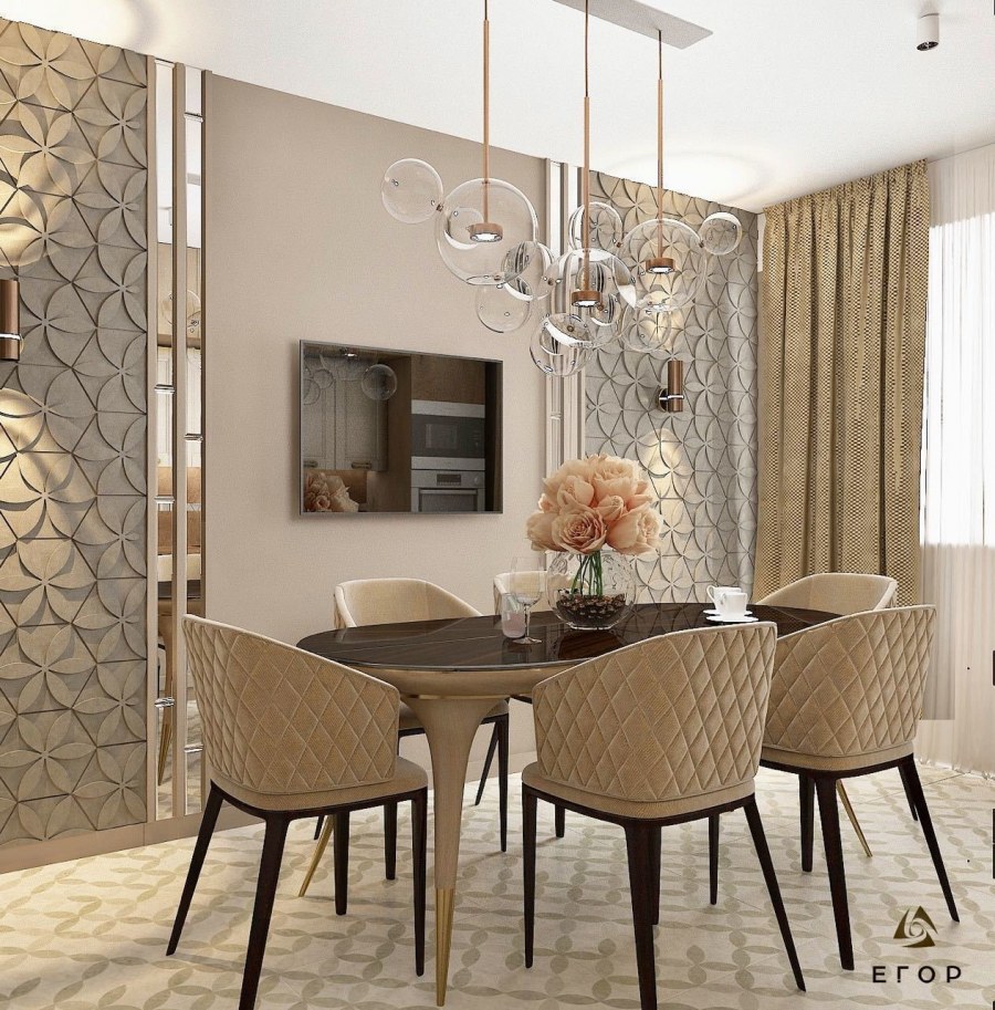 Зеркальное панно в обеденной зоне