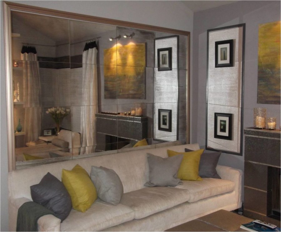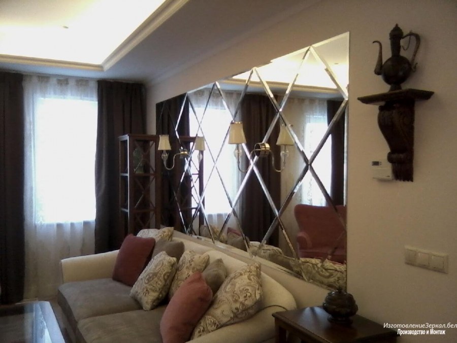 Зеркальная стена за диваном