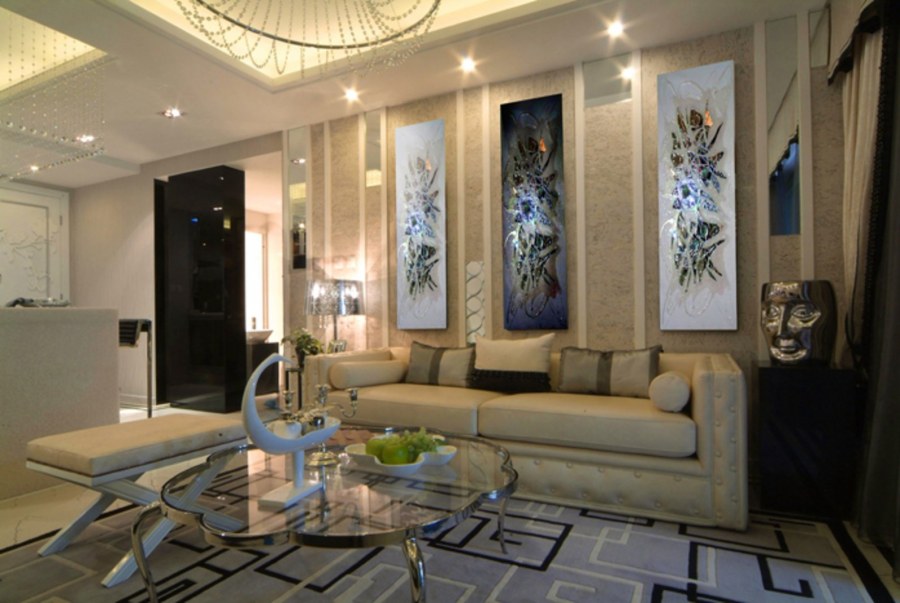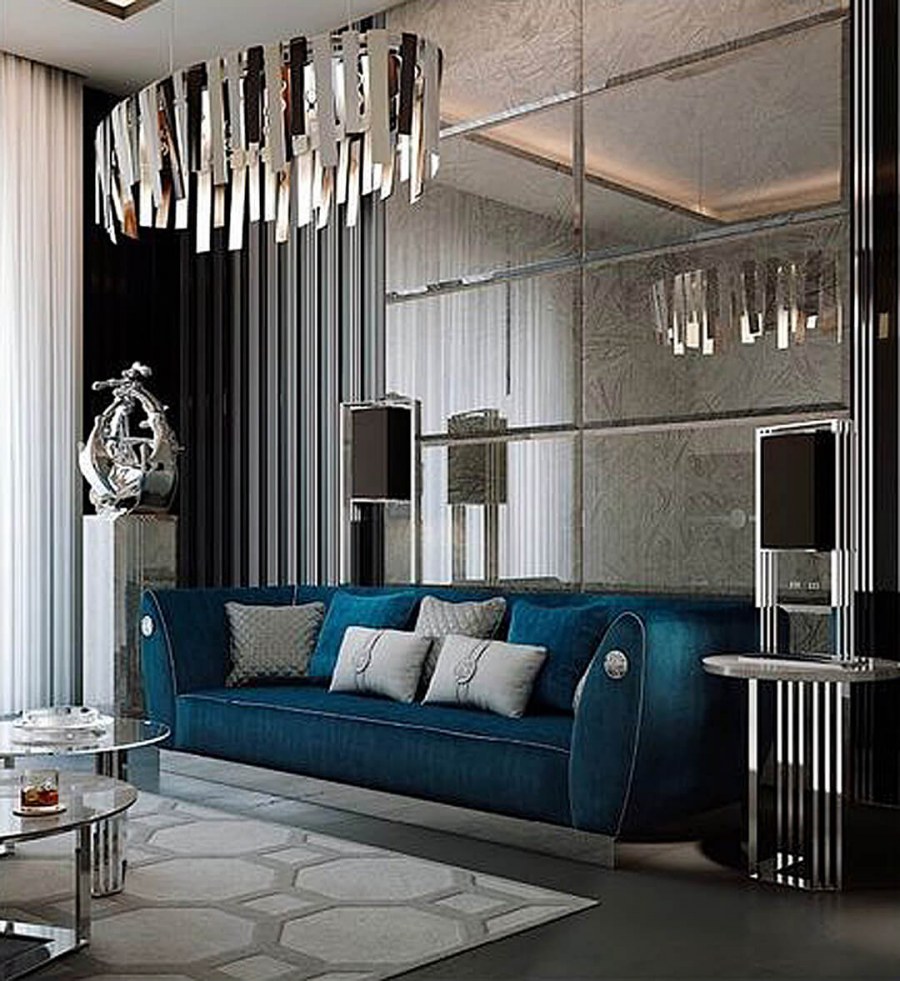 Зеркальная плитка в интерьере гостиной