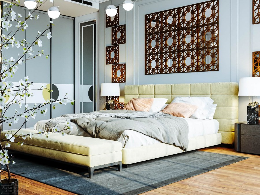 Зеркальное панно в спальне