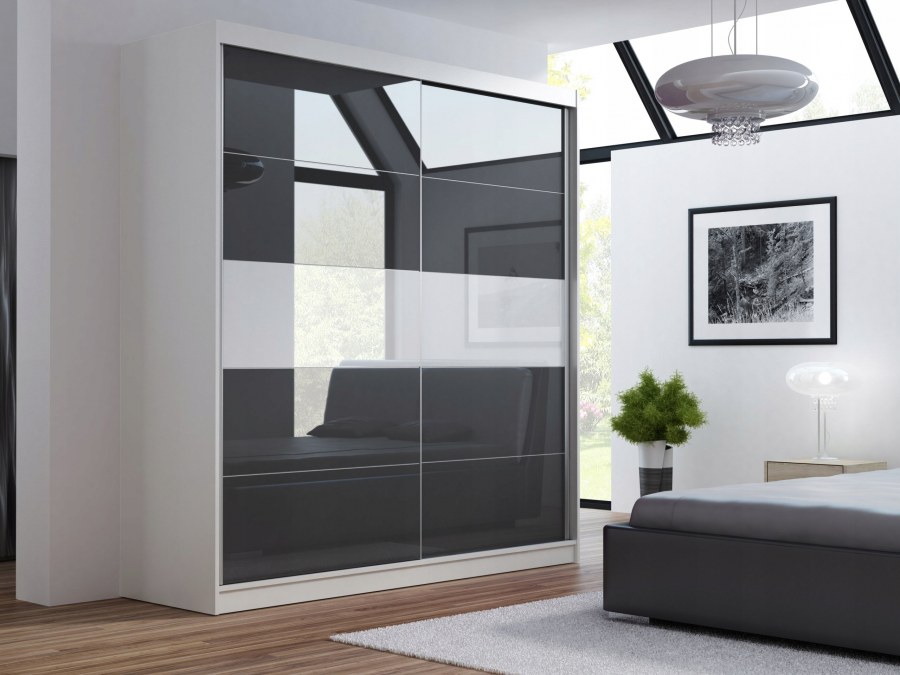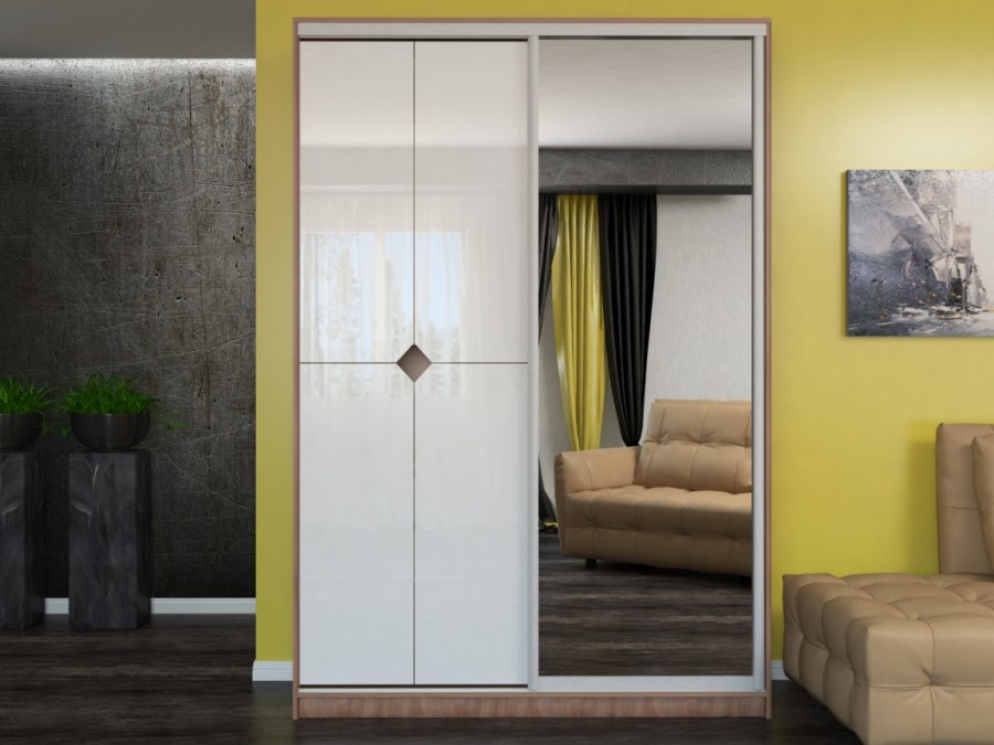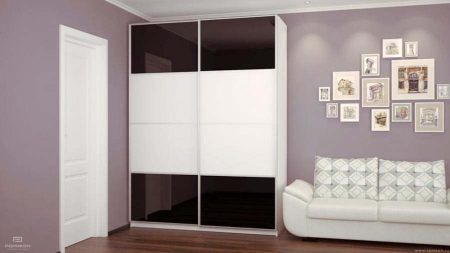 Белый шкаф купе с черным стеклом