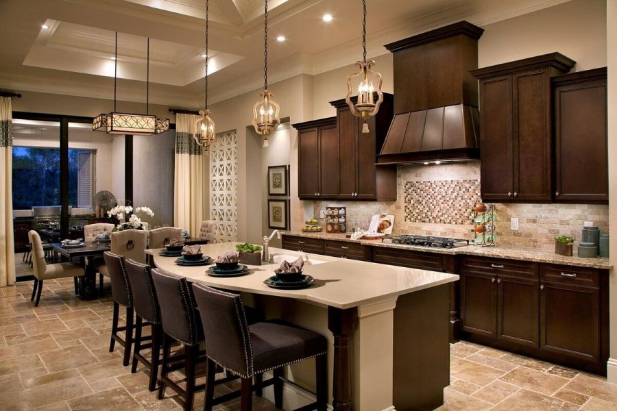 Интерьер кухни с коричневой мебелью