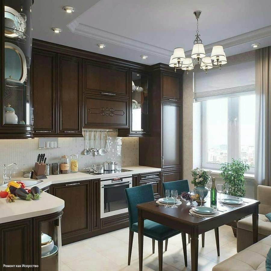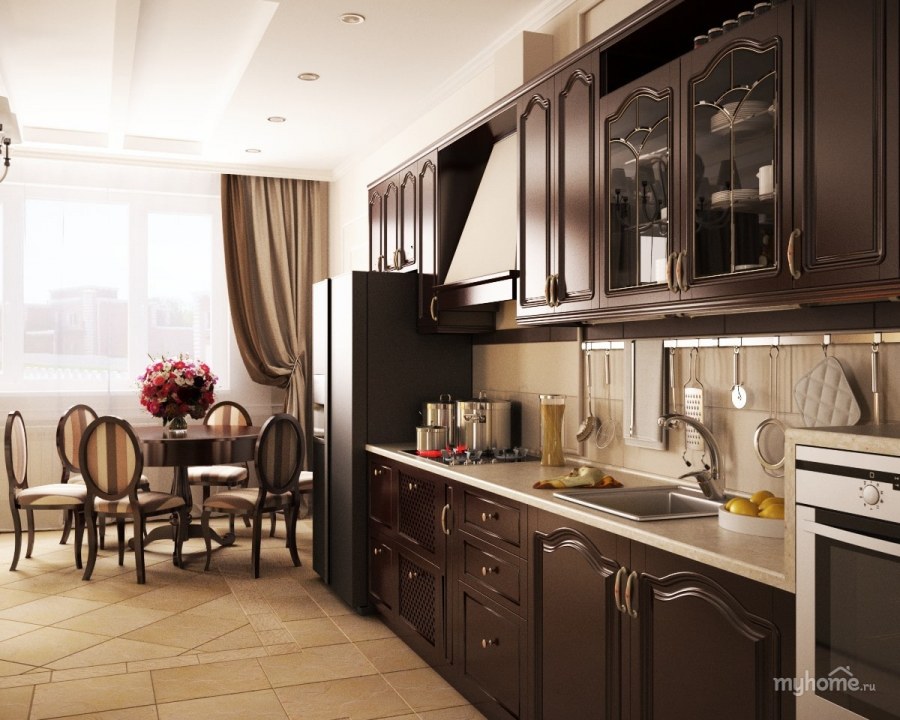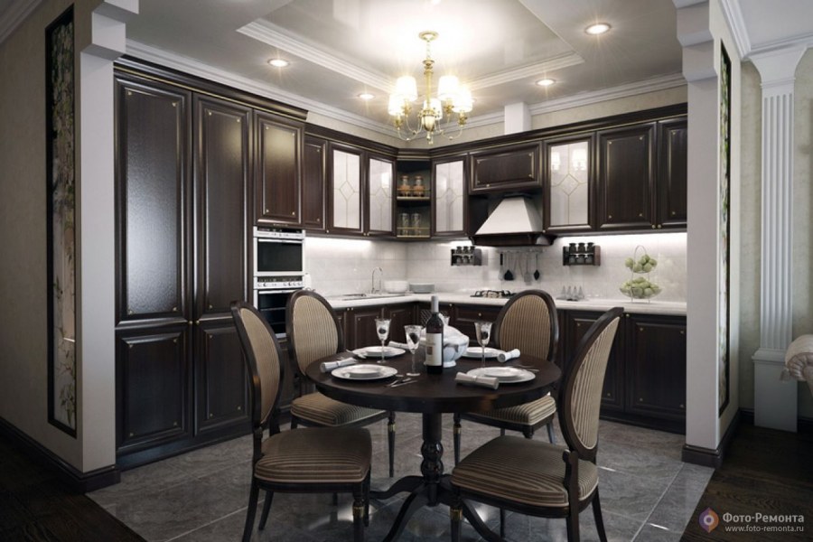 Кухни гостинные в классическом стиле в темных тонах