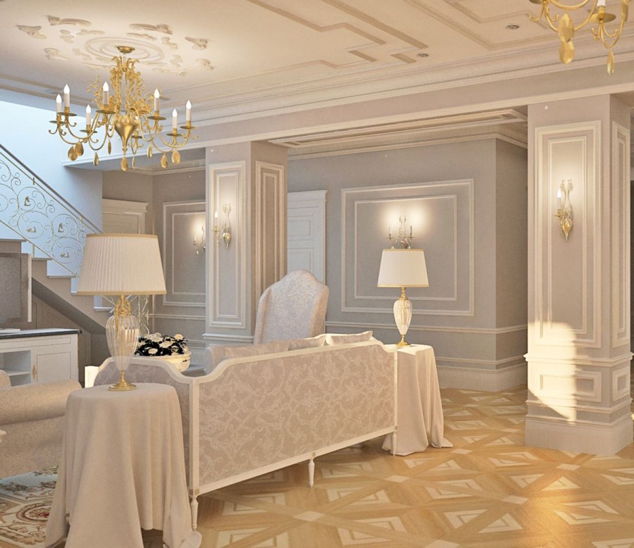 Интерьер в классическом стиле в светлых тонах