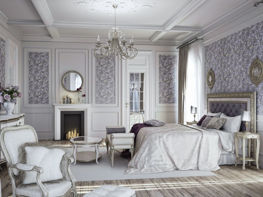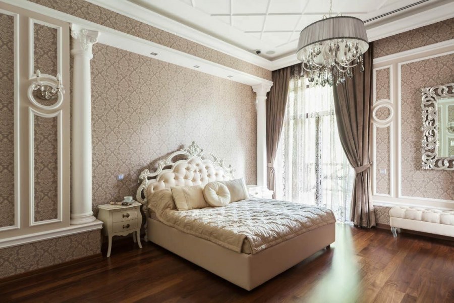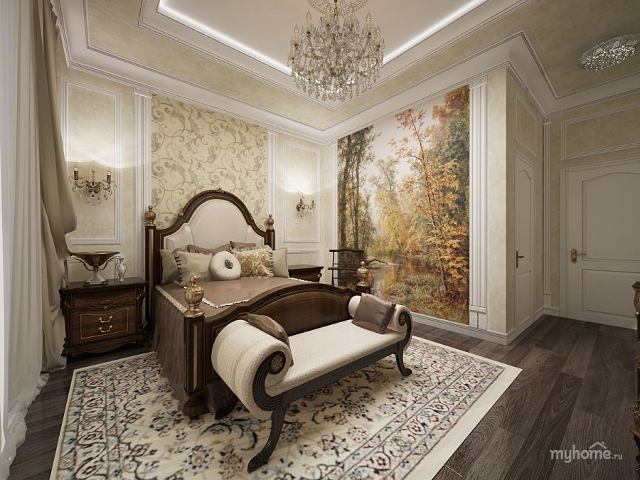 Спальня в классическом стиле с фотообоями