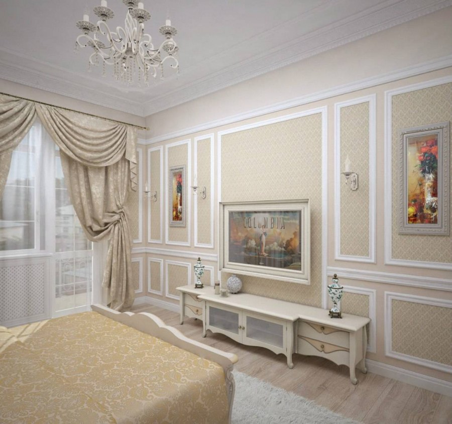 Спальня в классическом стиле с лепниной