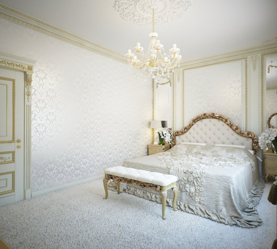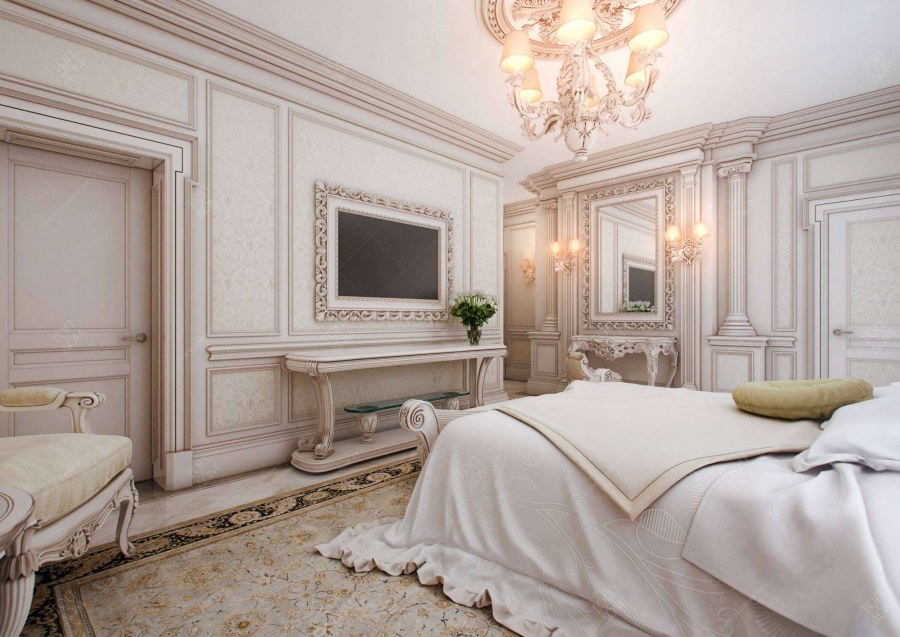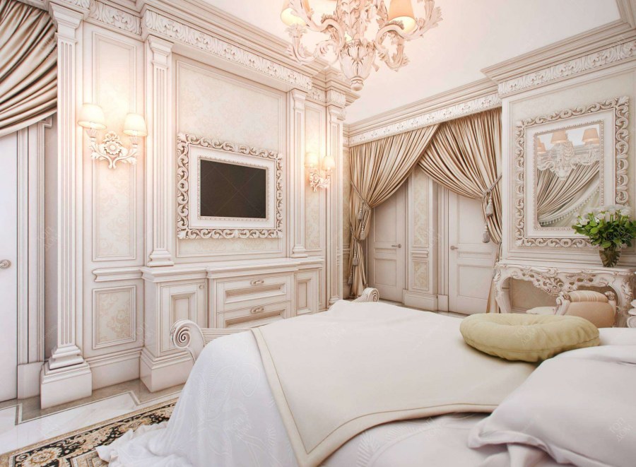 Спальня в классическом стиле в светлых тонах