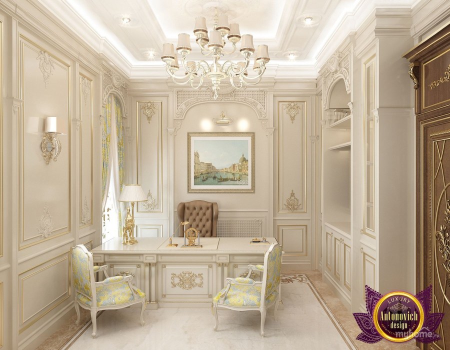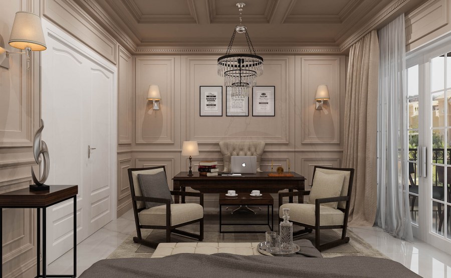 Кабинеты в классическом стиле в бежевых тонах
