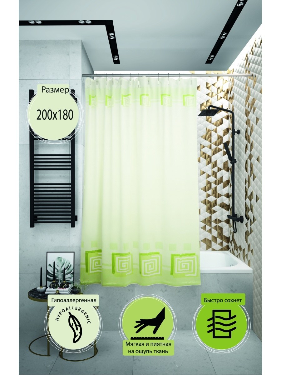 Штора д/ванной "Северное сияние" 180х180см Eva асс