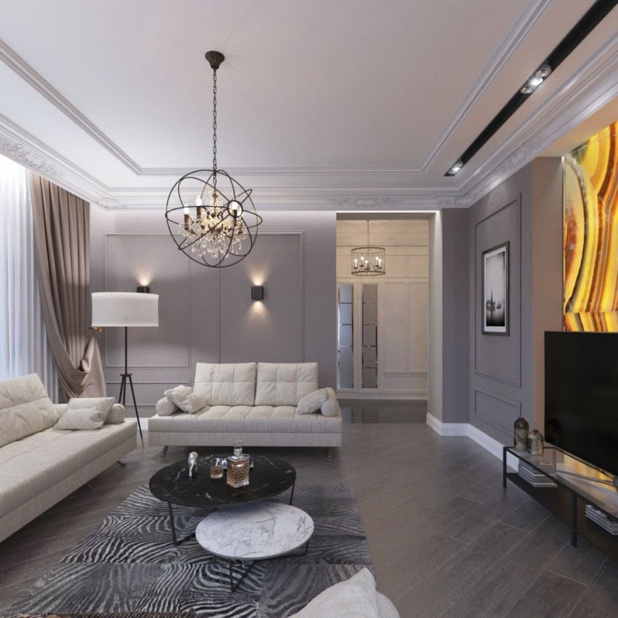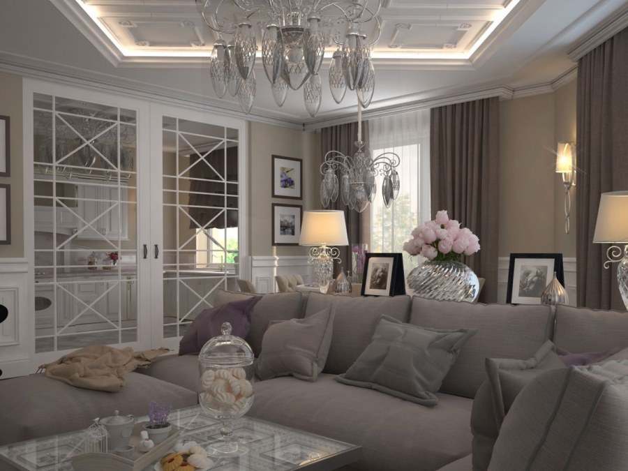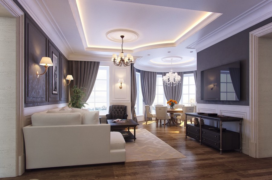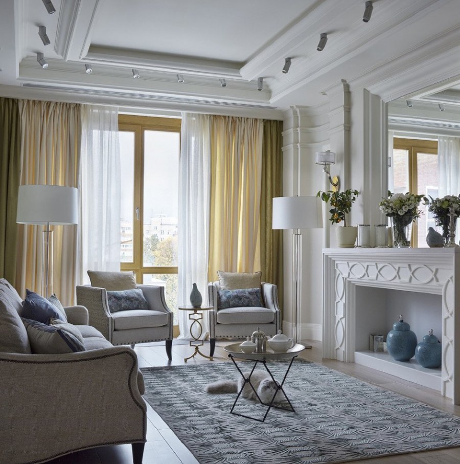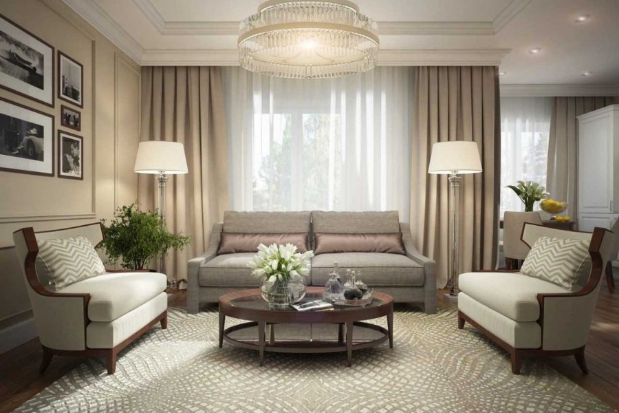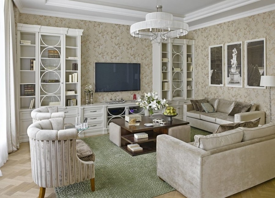 Дизайн гостинной современная классика (74 фото)