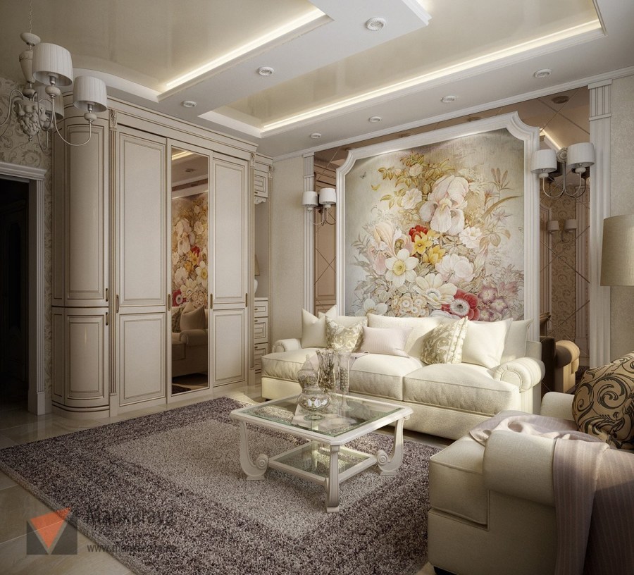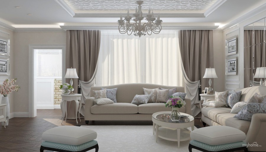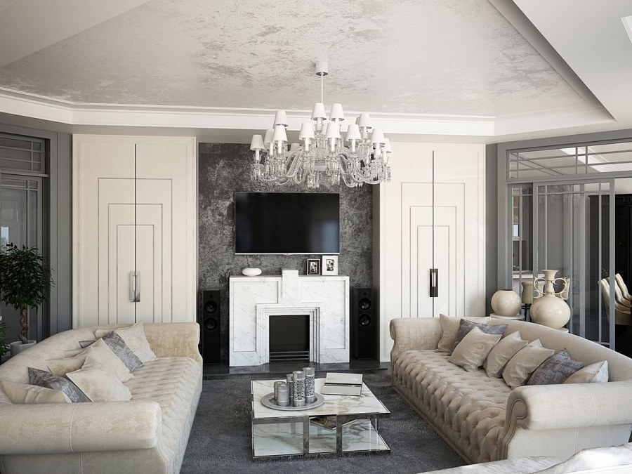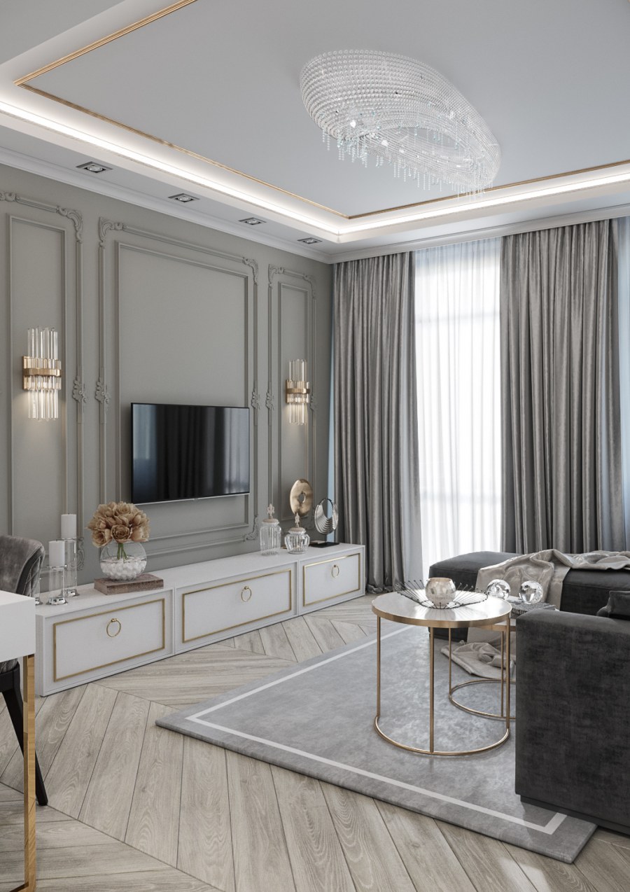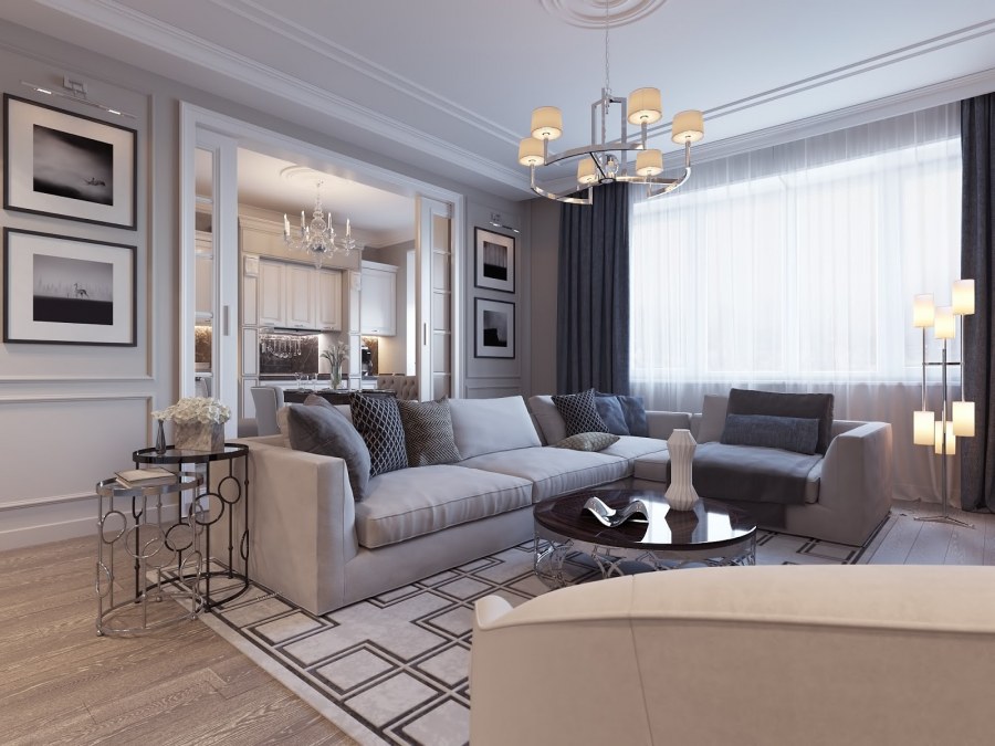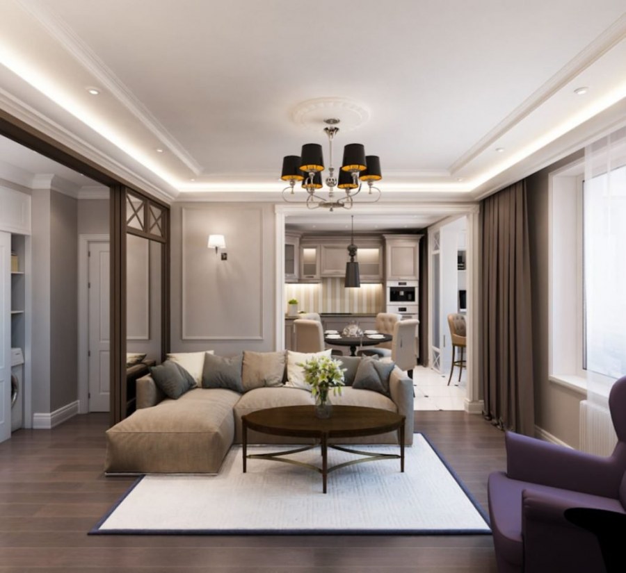 Дизайн гостинной современная классика (74 фото)