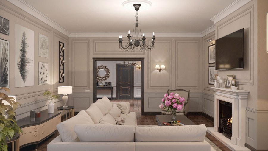 Интерьер в неоклассике в светлых тонах