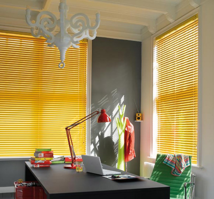 Желтые жалюзи в интерьере